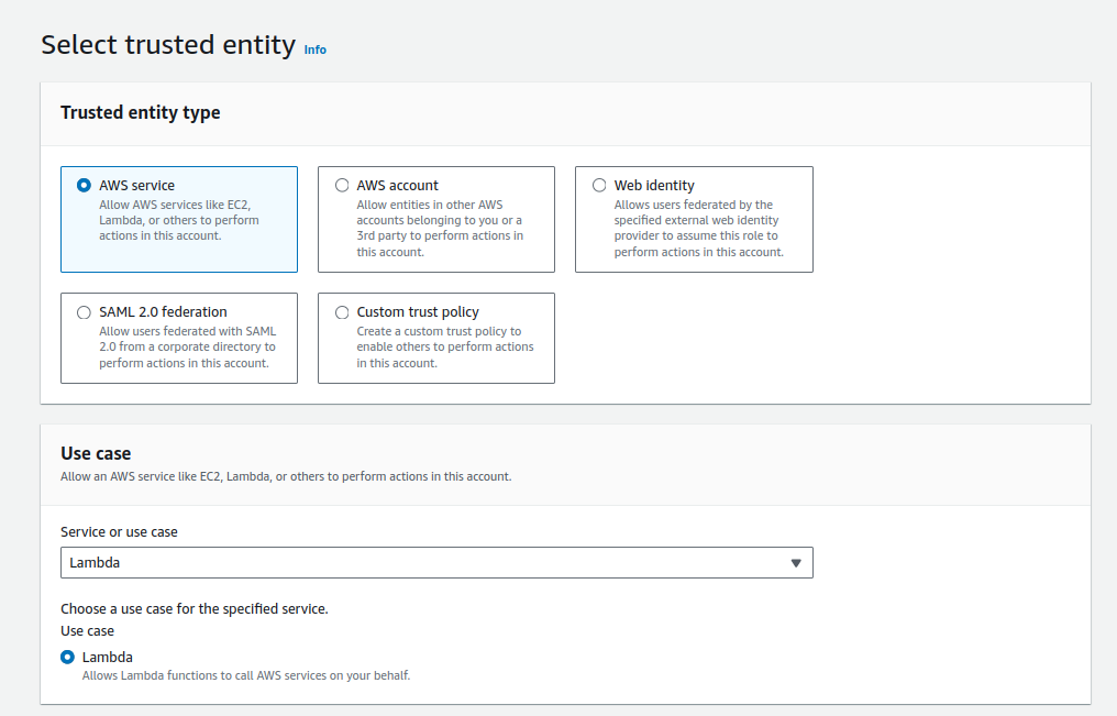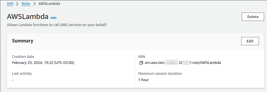If you did not specify an iam/role before deployment, Serverless will manage a user for you if the user has permission to create roles. In this example, I tried not to use this magic; in my opinion, allowing a tool to set your lambda permissions is not a good idea… Then let’s create some roles; we can ask Amazon help to create a Lambda-specific user, as I did below: After we create this role, you must copy the ARN and specify it at deployment. This is fantastic, however we construct a Lambda user who has access to any AWS resource, thus it’s an excellent security question for production scenarios. I recommend that you create something specifically for your lambda. It’s hard but safe.