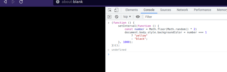 This example takes me back to my first Javascript classes. The sample uses setInterval to change the background color at random, and the most important thing is that IIFE declares an Interval without leaving a trace, as scripts Analytics, ADS, and others do.