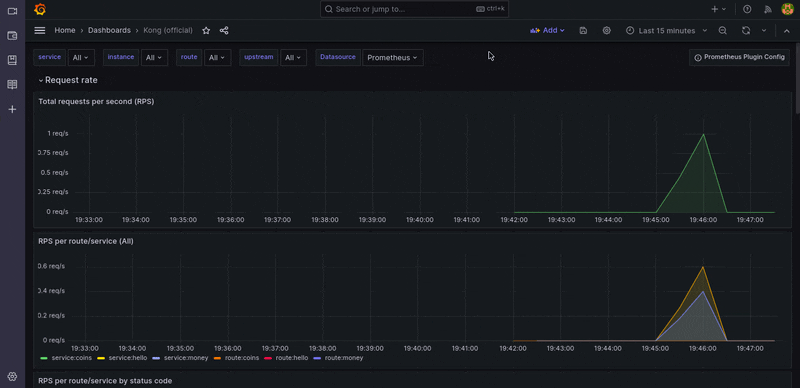 This file covers Kong features; only one plugin is used to get metrics for Prometheus; all metrics should be enabled to support every section of the Official Dashboard.
