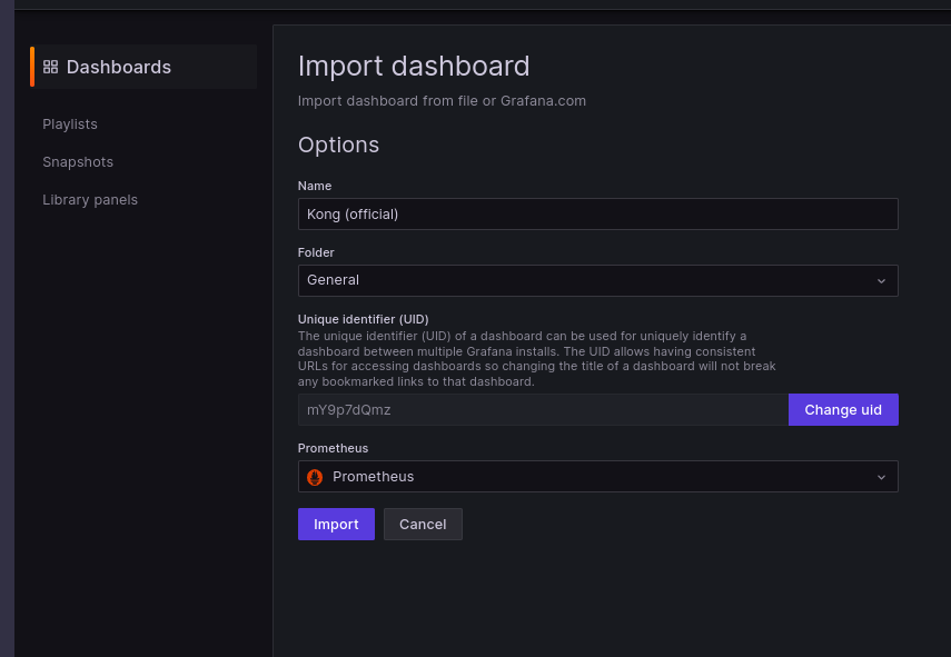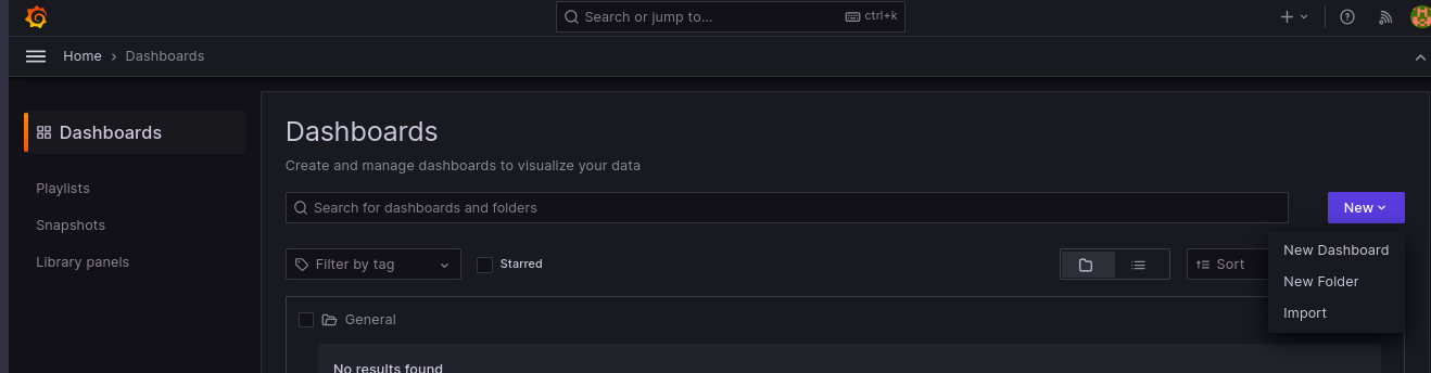 The Grafana dashboard can be accessed via http://localhost:9091/. using such strong default credentials (admin/admin). After signing in, browse to Dashboard > Manager > Import.