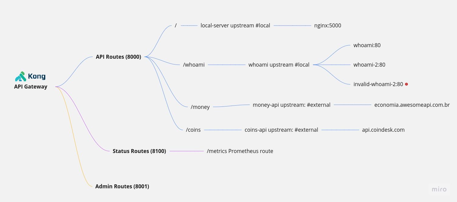 - **api routes, **by default, Kong listens on port 8000 for established API routes.